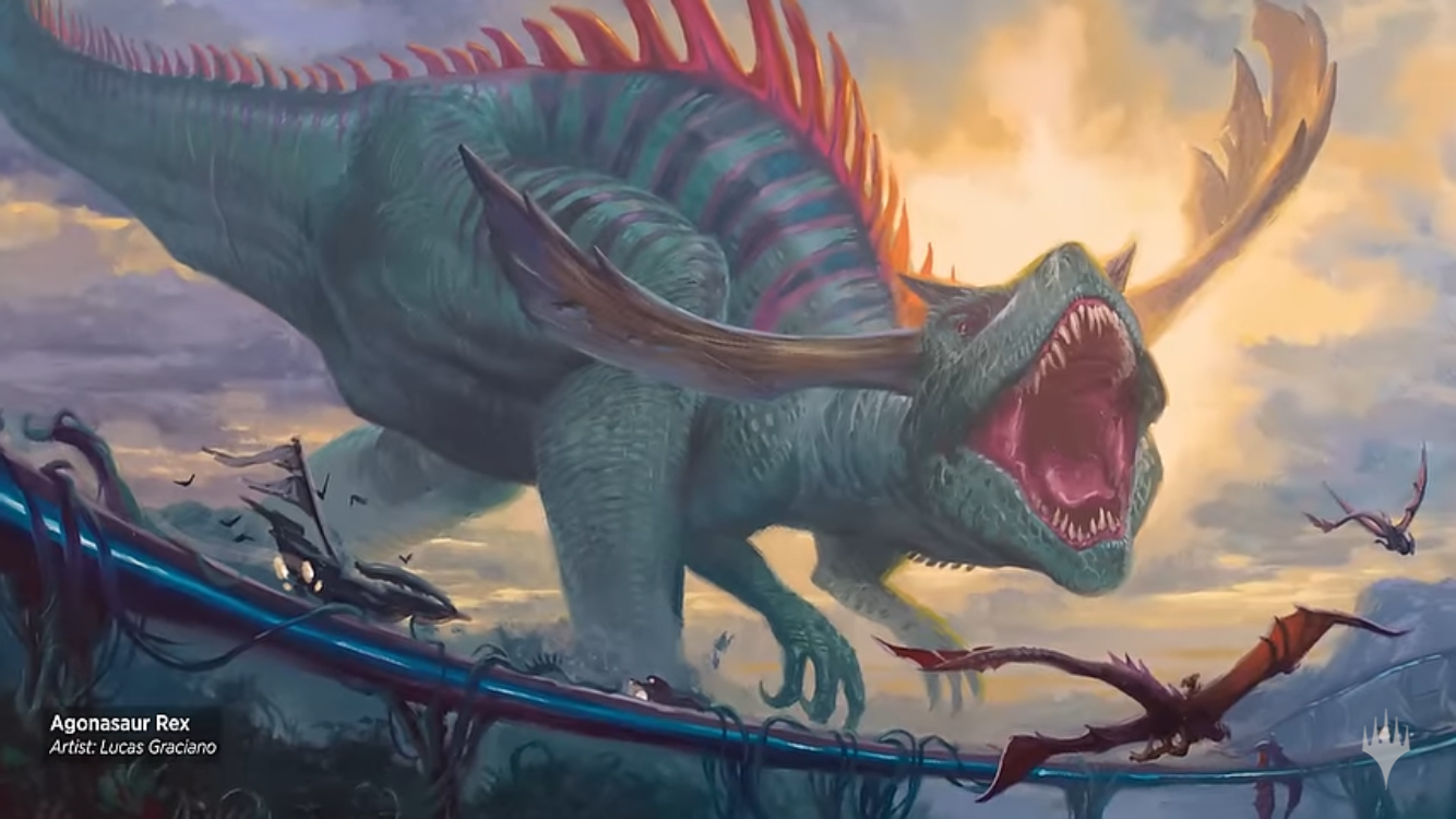 The cycling ability on Agonasaur RexAgonasaur Rex makes this read more like a modal spell. For three mana, you can protect a vehicle/creature and be a combat trick, or for five mana, you get an 8/8 with trample.