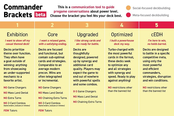 Part one is the five brackets, which define deck levels on a spectrum of social to competitive gameplay.