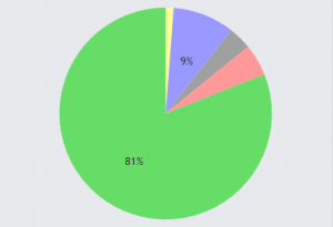 The five most played color combinations for the lands archetype at time of writing.