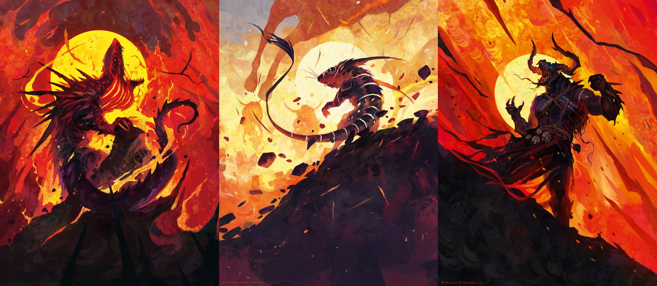 Spitfire LagacSpitfire Lagac, Canyon JerboaCanyon Jerboa and Moraug, Fury of AkoumMoraug, Fury of Akoum alternate arts, by Dominik Mayer.
