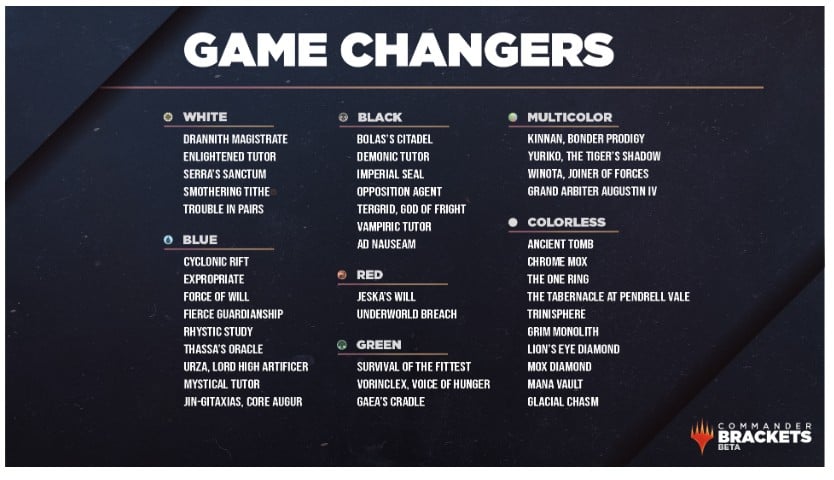 Upgraded Bracket continues with no mass land denial, no chaining extra turns, and is okay with late game 2-card infinite combos and up to three "Game Changers."