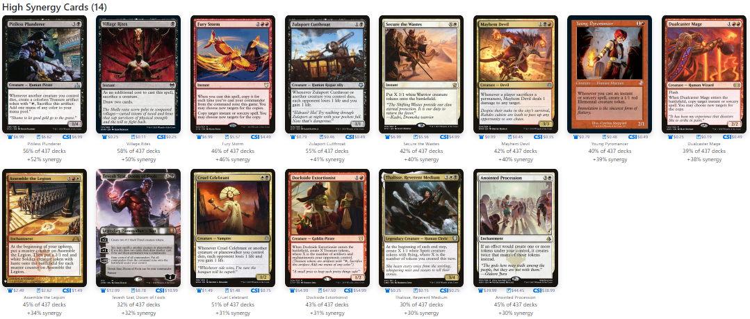 As we can see from this high synergy section, people are investing in Aristocrat pieces and tokens in general. This is pretty self-explanatory because Extus's built-in recursion is great for a grindier play style.