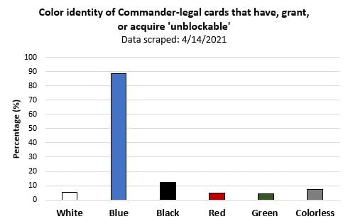 Unsurprisingly, the vast majority of unblockable cards are blue-inclusive.