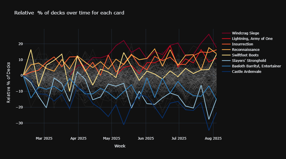 And, the ever-popular Swiftfoot BootsSwiftfoot Boots has a Fire Score of 2.57. I'm surprised that this Equipment is seeing any movement, given how ubiquitous it is in EDH. I'd have expected pilots who upgraded their precons to have added this one when the deck was released over a year ago, but I suppose I'm wrong. I love writing this series for fun facts like this, it's always interesting to see what cards are on Commander players' minds!