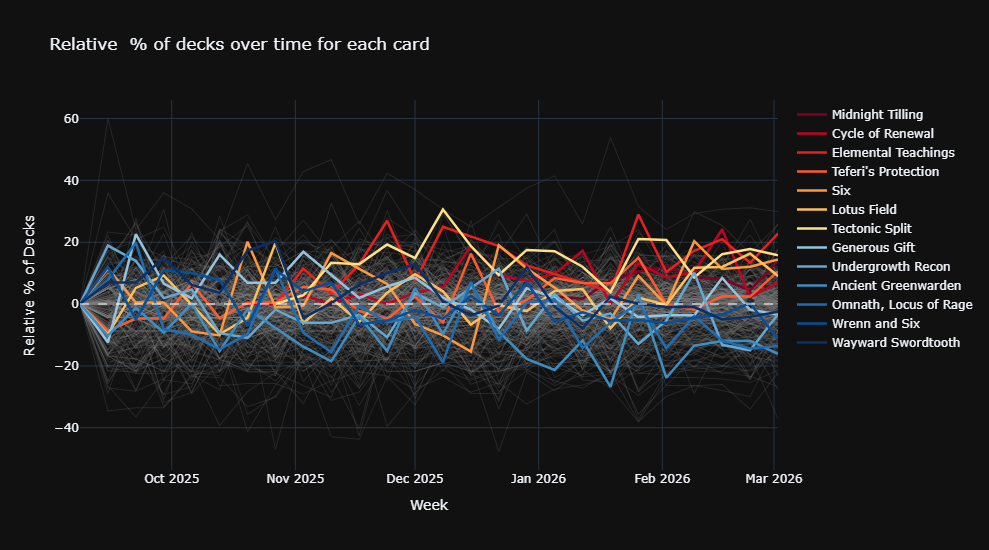 In this series, we draw conclusions from EDHREC's data about how certain commanders' decks have changed over time, give insight into how the format's players are thinking about new cards, and hopefully provide some tech for your favorite commander's list. To learn more about the math behind this series, check out this page! We've made a few changes to our methodology recently, and you can read all about them here.