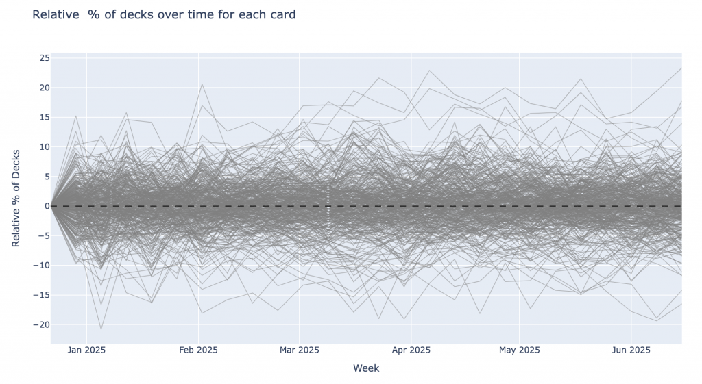 We can see that these cards clearly have exhibited more extreme changes over the time period than the cards identified as stable: