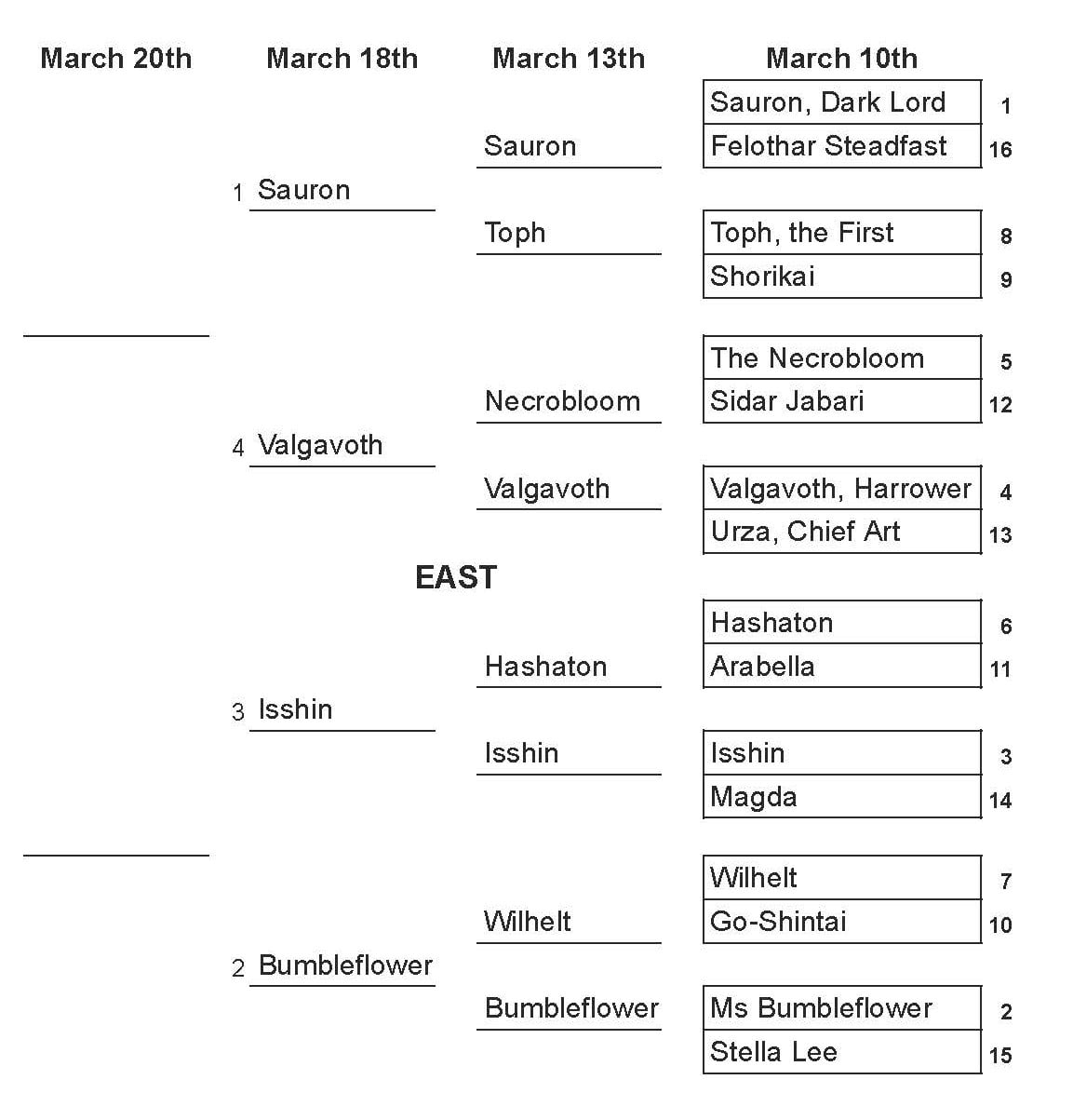 Round three of EDHREC's March Commandness Bracket Tournament continues! In this article, we'll look at who won the matchups from round two in the East and West conferences, and then kick off the next round of voting.