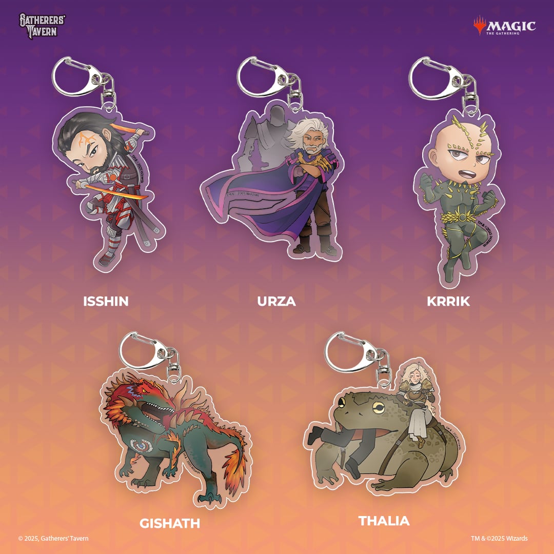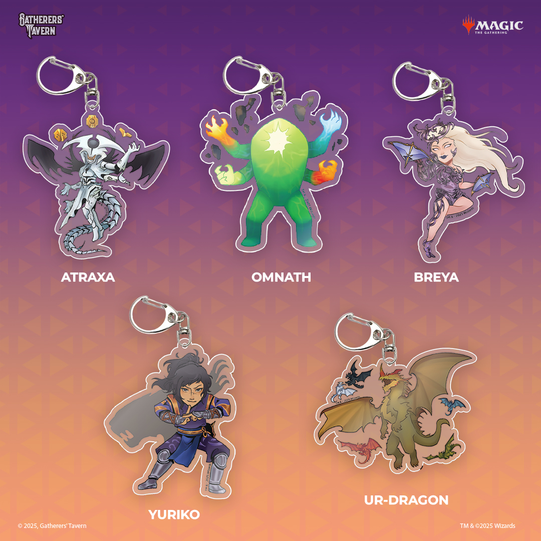 - Commander Keychains, including Atraxa, Praetors' VoiceAtraxa, Praetors' Voice