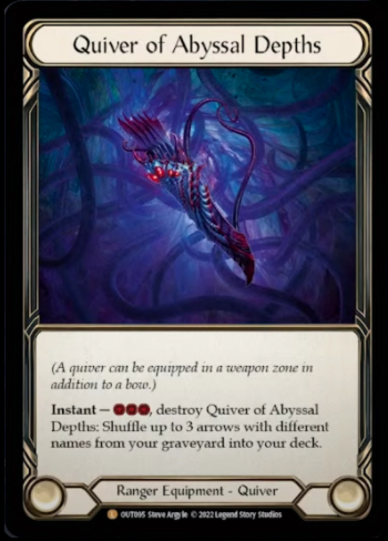 We round out our sideboard by including two pieces of situational equipments. Bull's Eye Bracers is there to provide some amount of arcane barrier against the Runeblades and a free reload to close out a game, and Quiver of Abyssal Depths insulates us against Fatigue when playing defensive decks. Finally, three copies of Sink Below allow us to load up on more defensive options while still playing into that midrange, value-focused game plan of ensuring that every card trades on-rate or above.