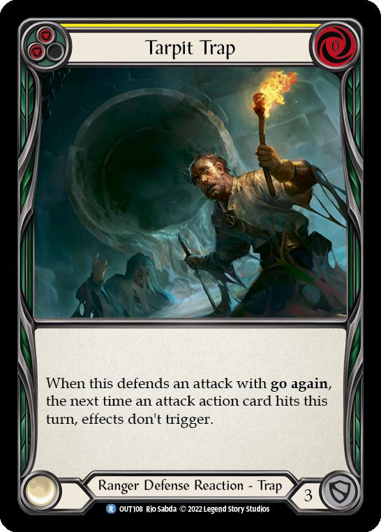The three new common arrows all come in at the ever-important break point of 4 attack with an on-hit at yellow, and the new yellow traps from Outsiders all block for three and serve as the pitch base for this style of deck – while giving us great tools to combat a variety of playstyles at essentially no opportunity cost! Only around 50% of players include Tarpit Trap and Boulder Trap, while even less (around 10%!) include Infecting Shot at red or yellow.