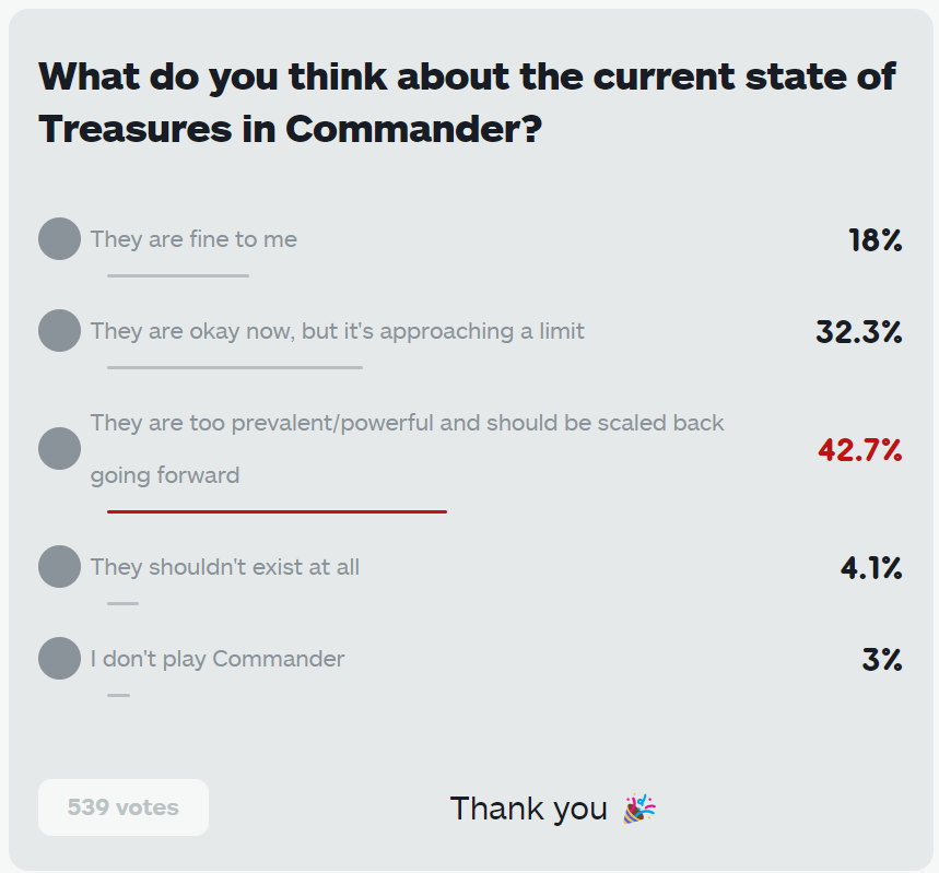 Regardless of where you fall on Treasures, I hope we can all concur that Treasures are here to stay, and will likely be present in nearly every single Commander game for the foreseeable future.