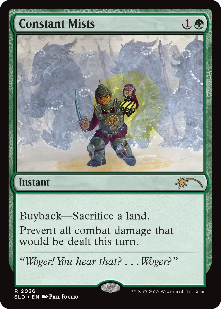 Classic Magic artist Phil Foglio is a perennial favorite for many players. His oftentimes zany, painterly work draws players to the game and hearkens back to the olden days of the game. And now, he's been commissioned to create a Secret Lair! This drop features multiple red and green cards. The most mechanically notable of these may be a timely reprint of Constant MistsConstant Mists. However, his Orcish LumberjackOrcish Lumberjack is also just so aesthetically Foglio. Take a look!
