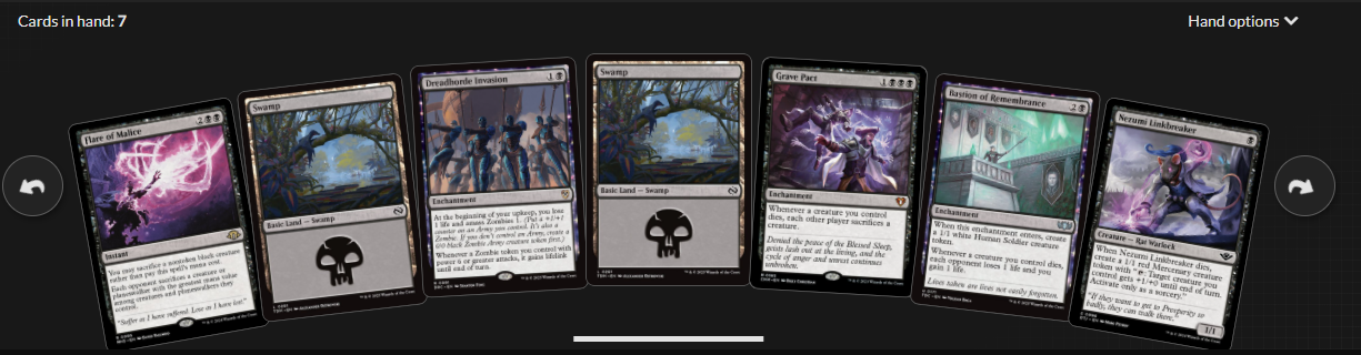 Below are some sample hands I kept while goldfishing the deck, and each of them worked out really well, or at least, as well as they can when playing solitaire.