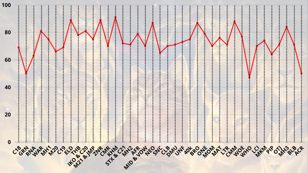 Still three percentage points better than Doctor Who, my all-time worst performance, although that's not really something to brag about. These Universes Beyond sets can be tough to evaluate.