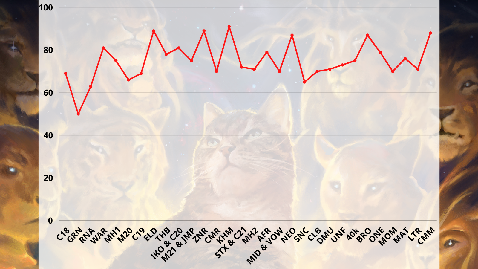 I've also got a working theory that I honestly probably should've noticed sooner. You know how Wizards frequently teases commanders from upcoming sets several months in advance to build hype? Those commanders always seem to go Over. Unsurprising, since they're incentivized to reveal the set's best first. But also, I think early previews simply have bonus time to accumulate decks, leading to easy Overs.
