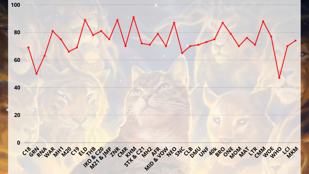 For reference Lost Caverns of Ixalan and Wilds of Eldraine both had far higher average deck counts. Plus, those sets contained several uncommon legends, which often reduce the overall average. MKM didn't have that obstacle, yet still couldn't keep up.