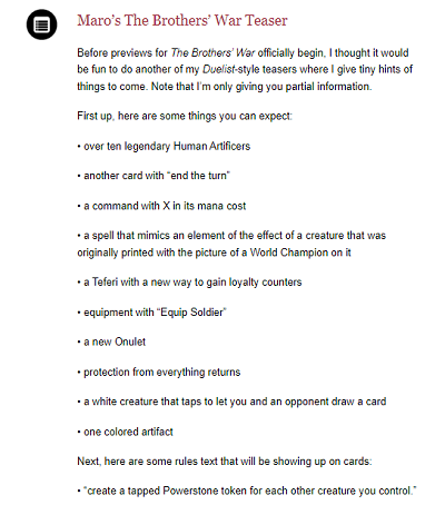 The Brother's War spoilers are almost over, and one of the first I saw caught my eye immediately for a ridiculous idea that absolutely no one should pursue: Artificer tribal!