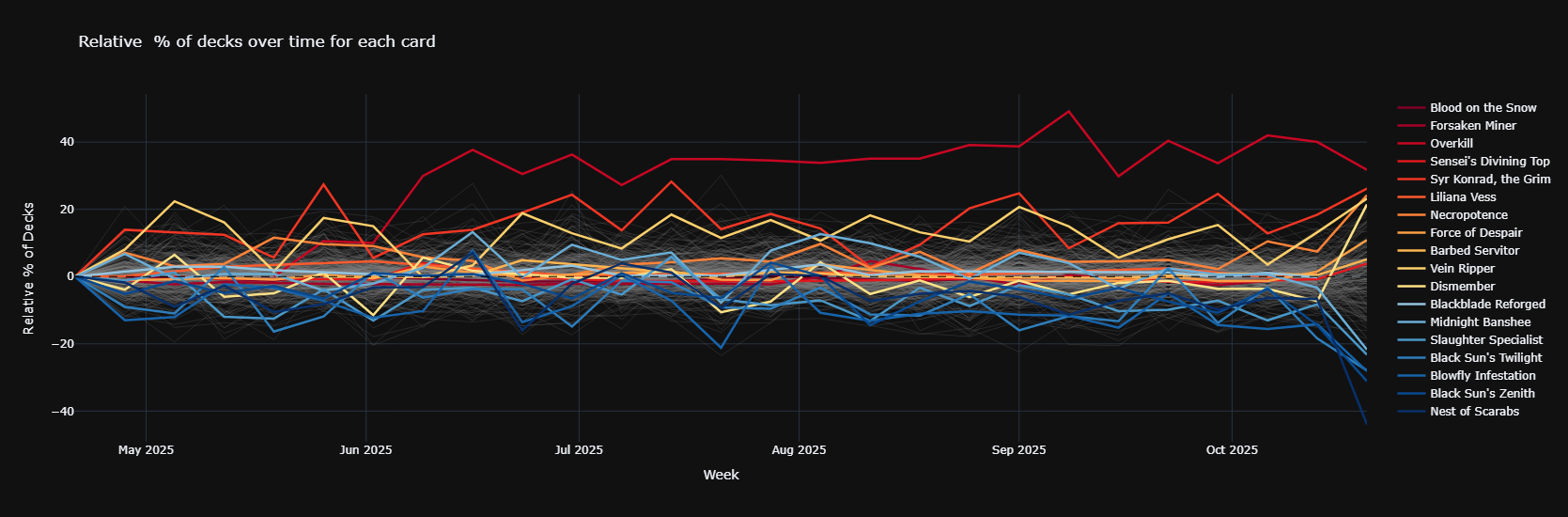 Welcome to Fire and Ice! I'm Julia, EDHREC's Duchess of Data, and I'm super excited to talk about which cards are gaining and losing popularity for Massacre Girl, Known KillerMassacre Girl, Known Killer decks!