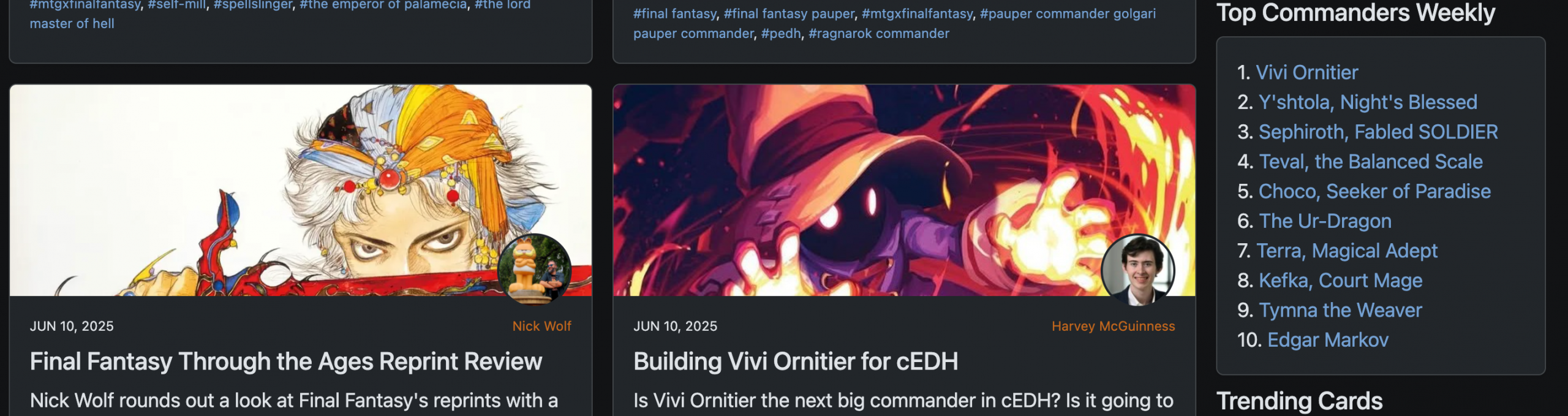 EDHREC collects deck data from Archidekt, Moxfield, and Scryfall, and new data often appears on our pages within a few days.