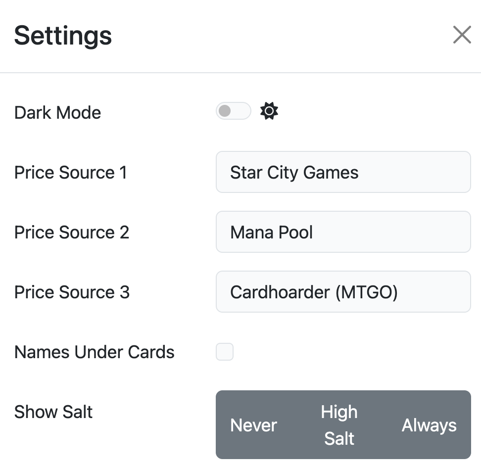 (On Archidekt) The Salt Sum is total sum of all the salt scores of every card in your deck.